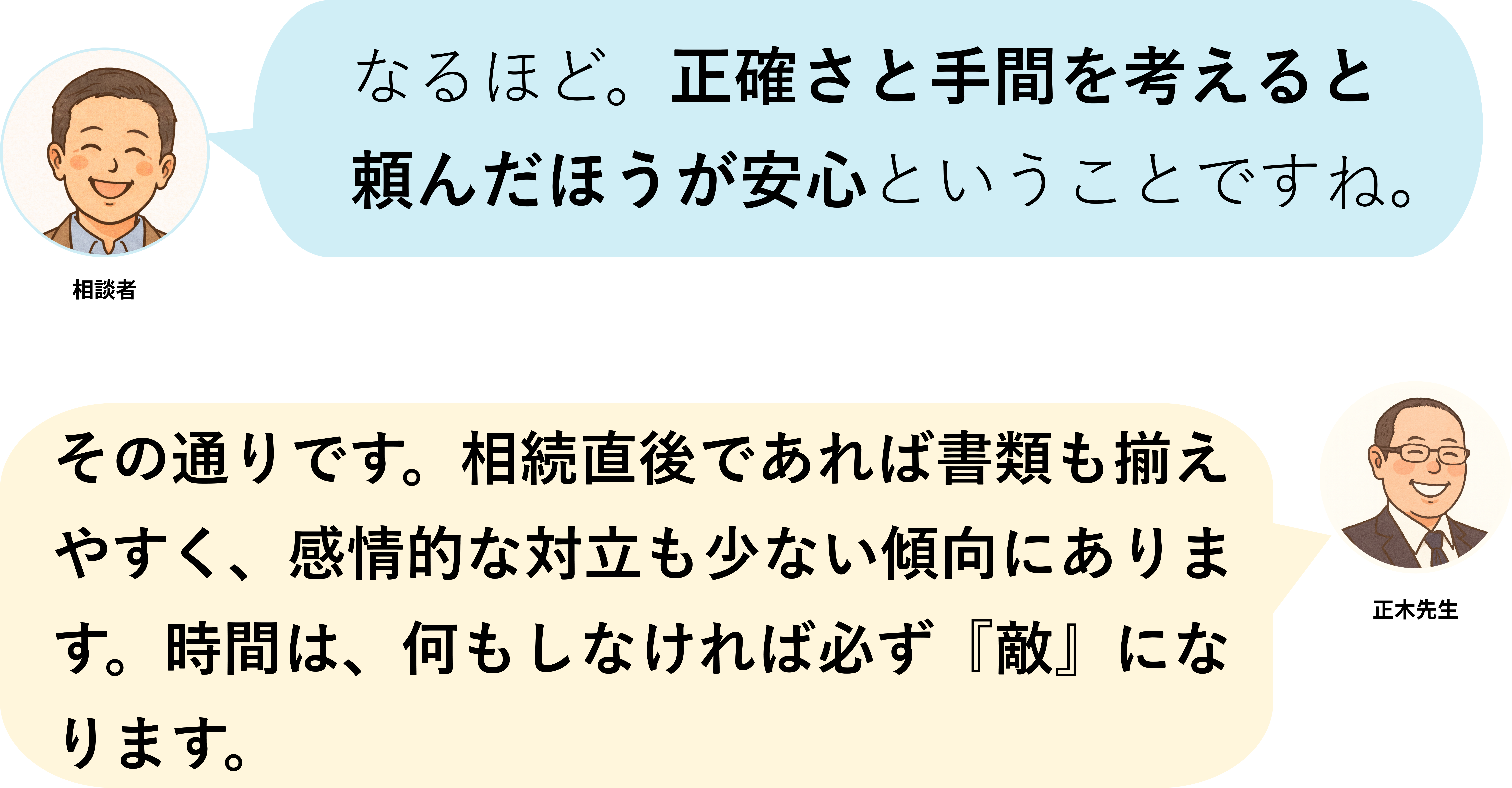 しかし実際には、時間が経てば経つほど、手続きは複雑になり、関わる人も増え、費用や精神的な負担も大きくなっていきます。