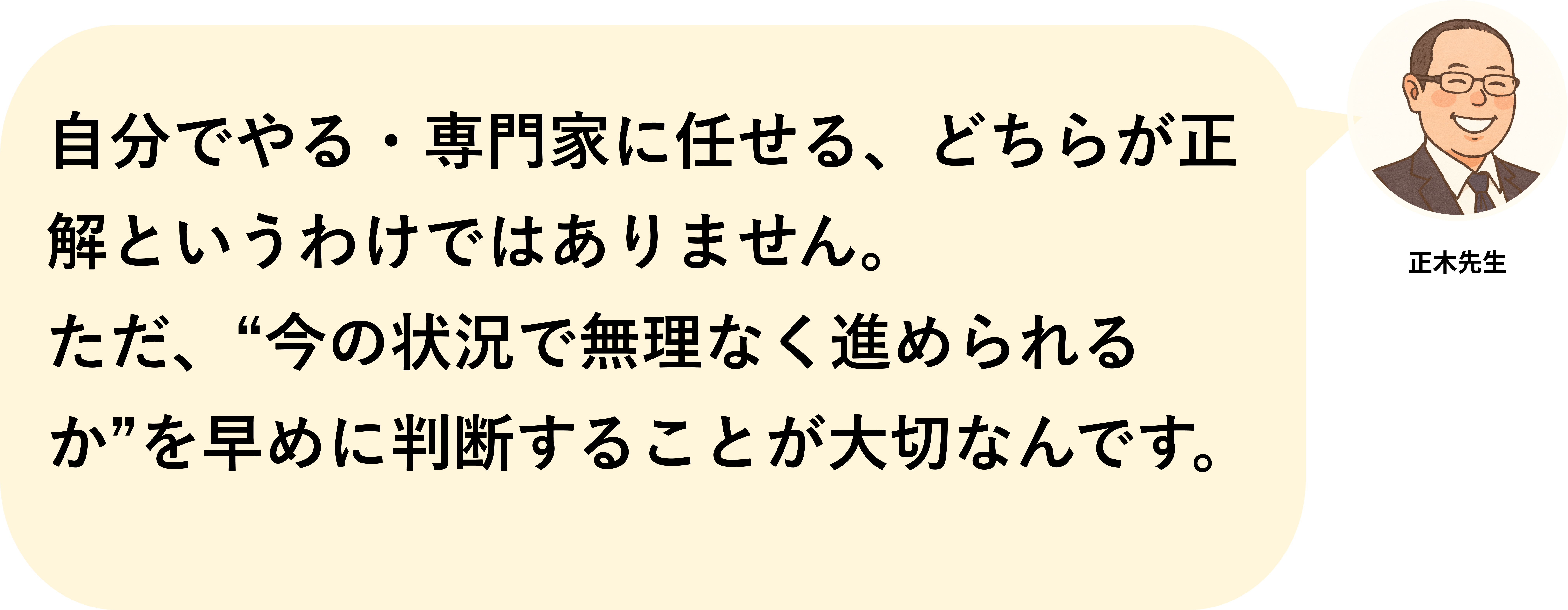 早めに専門家へ相談し、確実に・早く・ラクに対処する選択を検討してみてください。