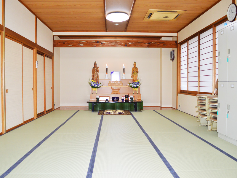 1Fにはホールがふたつあり、小規模の家族葬儀から大規模の葬儀まで対応可能です。大切な方とのお別れの時間を穏やかな気持ちでお過ごしいただける環境が整っています。