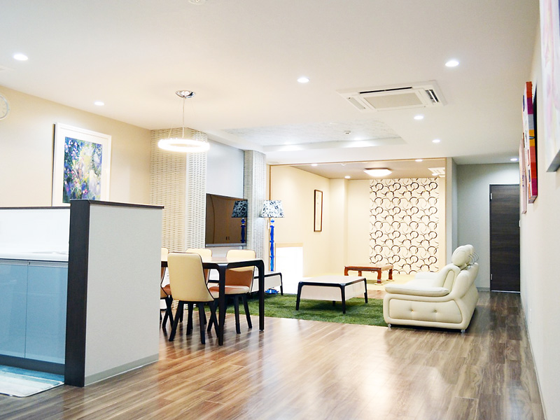 リビング・キッチン・和室・バスルームなど、まるでマンションの一室のような親族控室。
