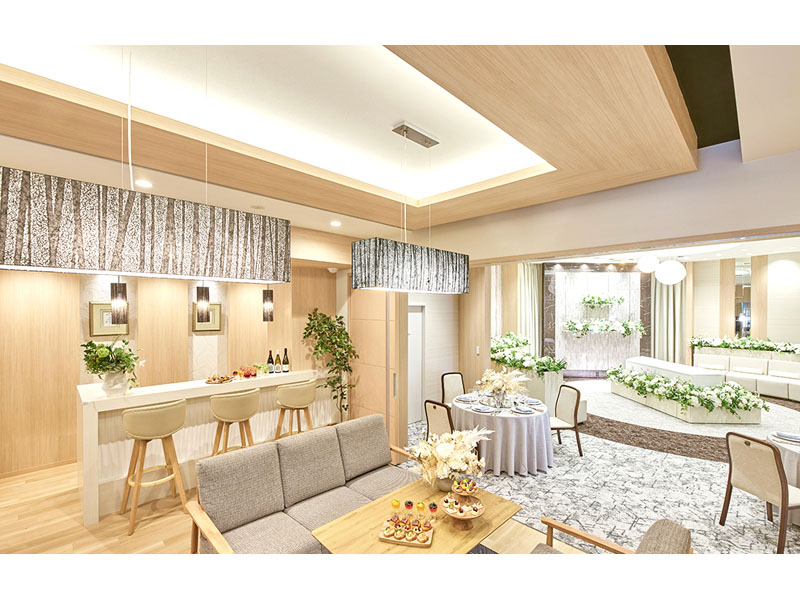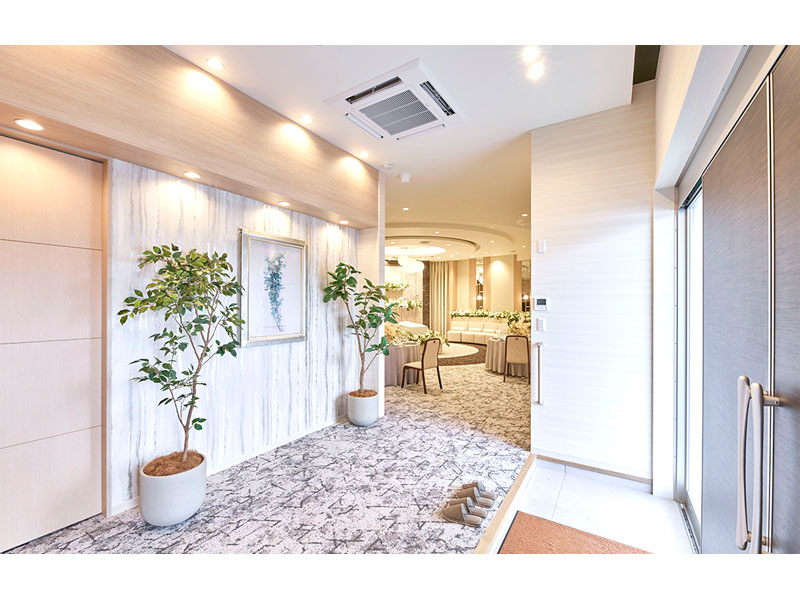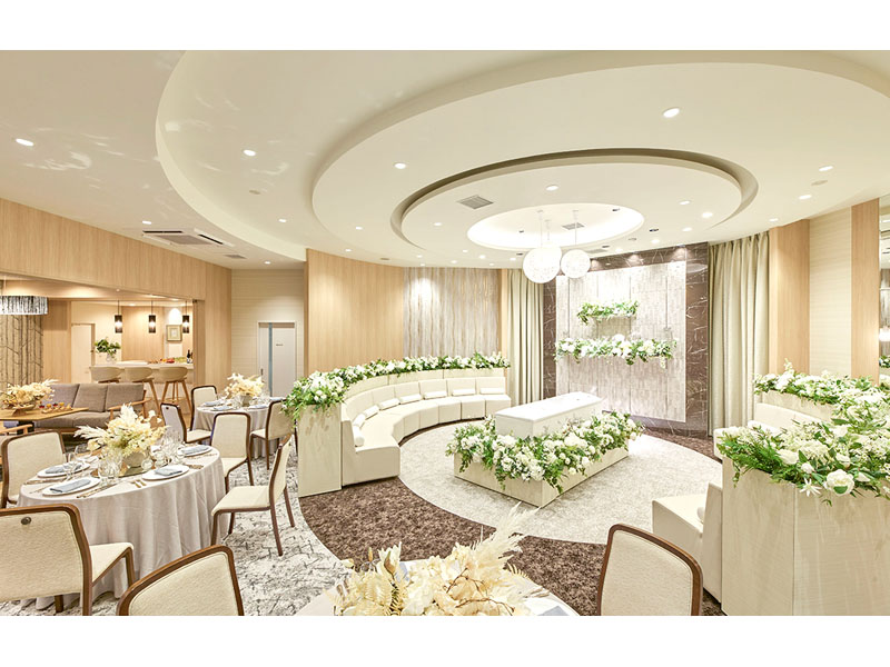 従来とは異なるラウンド型の式場になっており、コンセプトは「皆で故人を囲む新しい時代の葬儀形式」。メインホールやリビングなど南ヨーロッパ風を思わせる明るく開放的な空間の中で、最期のお別れを気兼ねすることなくゆっくりとお過ごしいただけます。