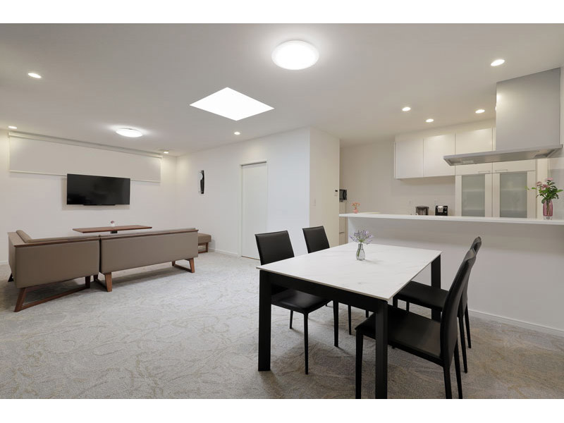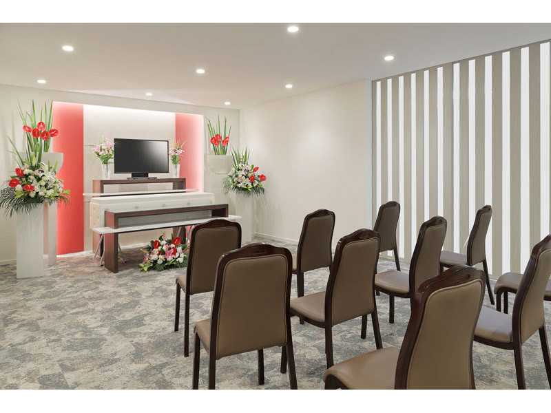 玄関は「我が家」の雰囲気を大切に靴を脱ぐスタイルにこだわりました。会席場はくつろぎの雰囲気を演出した空間です。語らいの時間をゆっくりお過ごしいただけます。家族室は自宅感覚でのくつろぎの時間をお過ごしいただけます(Wi-Fiも完備)。寝室はご家族でゆっくりお休みいただけるよう、シンプルで心落ち着くデザインにしました。ゆったりとお茶を楽しみながら大切な故人様の思い出話に花を咲かせることもできるようキッチンも備えております。