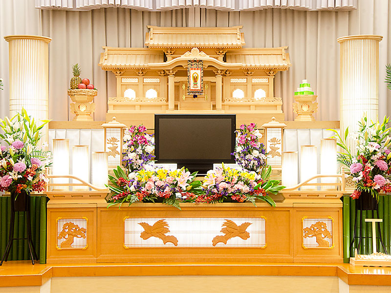 大小ホールを完備し、哀悼の祈りと想いでを優しく包み、お心を癒せる斎場でございます。控え室には、専用のシステムバスとトイレを完備しております。ご遺族のお疲れが少しでも和らぎますように10帖2間続きのお部屋をご用意いたしております。※仮泊の定員はございません。(寝具は5組)