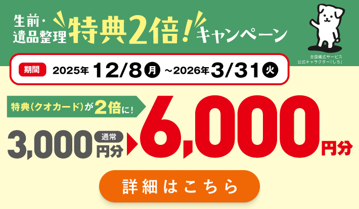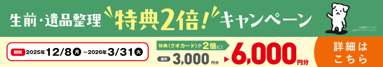 当サービスをご利用いただき、アンケートにご協力いただいたお客様全員にクオカード3,000円プレゼントいたします。